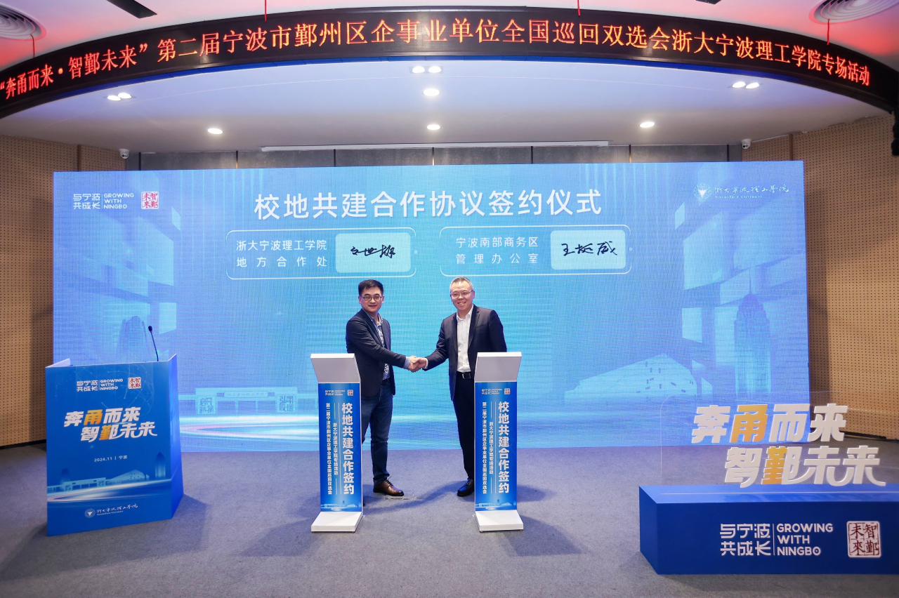 活动现场,宁波南部商务区管理办公室与威斯尼斯人1488cc官网地方合作处达成校地共建合作,推动实现鄞州区和威斯尼斯人1488cc官网更深层次、更高水平、更宽领域的融合发展。在合作协议的框架下,双方将共同推进产学研合作,加强人才培养和技术创新,实现双方优势互补,共同打造区域发展新高地。